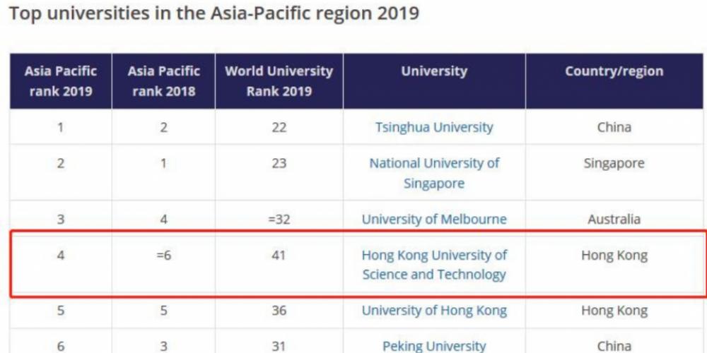 Congratulations to HKUST for moving 2 spots up to the 4th on Times Higher Education Asia-Pacific rankings 2019. The new ranking recognises HKUST as Hong Kong's No.1 university, in terms of teaching, research, citations, international outlook and industry income.